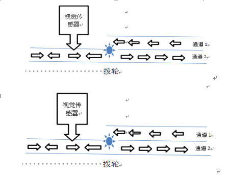 為了提高產(chǎn)能,振動(dòng)盤選用雙震動(dòng)雙通道進(jìn)行篩選;分揀排序裝置選用視覺傳感器進(jìn)行圖像識(shí)別,由分離撥盤按方向進(jìn)行分揀排序。